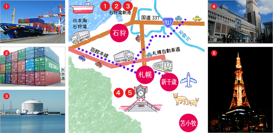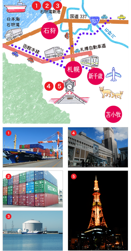 現在、石狩湾新港は、札幌から15キロ圏内という恵まれたロケーションから「札幌の港」と呼ばれ、その高いアクセス性で物流や輸送コストの削減、輸送時間の短縮を実現。都市力を維持した流通港として産業をバックアップするポジショニングを確保しています。