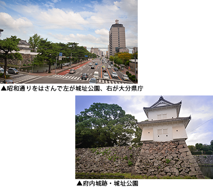 大分県庁、大分市役所、法務総合庁舎、中央警察署、税務署のほか、金融や証券、銀行などが、大分城址付近には集約されています。大分城址の南側の大分駅との間には、商店街が集まり、繁華街が発展します。さらに明治44年と近代史では早い時期に、今度は大分城址の北側にある海浜地区が埋め立てられると、大分市は重工業を受け入れた都市にバージョンアップします。