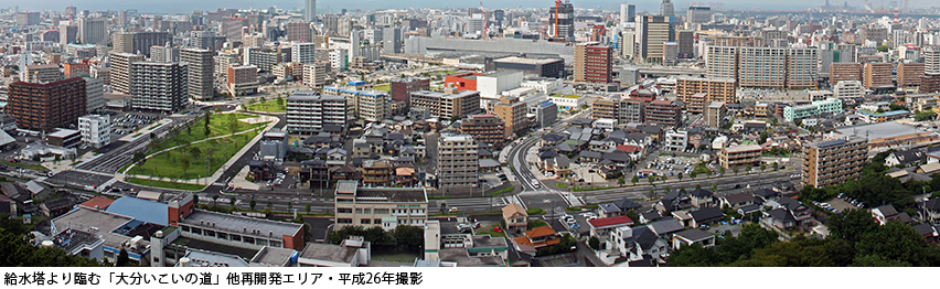 大分駅周辺総合整備事業は、大分県がJR大分駅の高架化を行い、大分市が区画整理によって駅周辺の基盤整備を実施、さらに大分駅周辺の幹線道路を国土交通省・大分県・大分市の役割分担のもとで整備を行うという、まさに大分駅周辺を総合的に整備する再開発事業です。