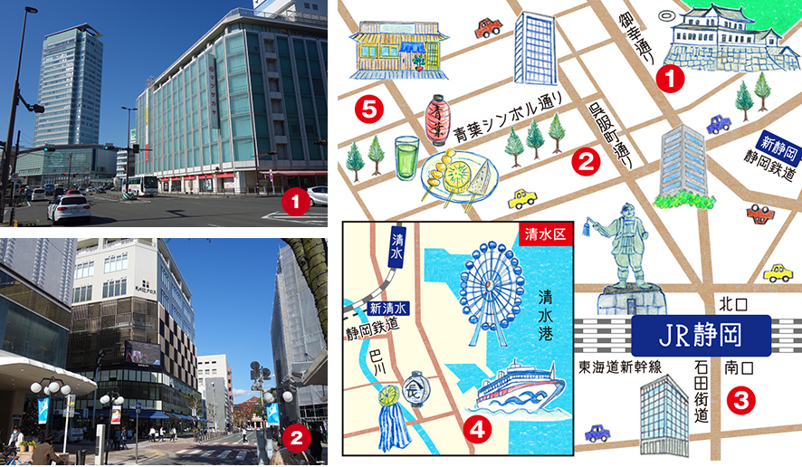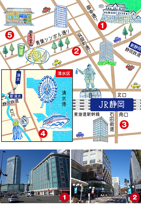 ▼イラスト地図=KAME HOUSE ▼取材協力=静岡市 ▼画像素材=PIXTA