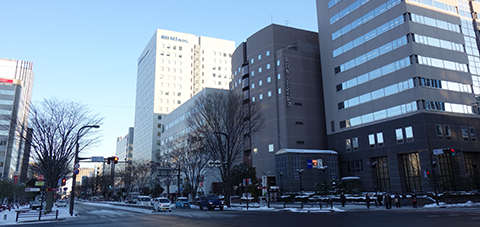 県庁をはじめとして、市役所、合同庁舎などが立地する官公庁街です。ビジネスエリアとしては、メインストリートの定禅寺通と、愛宕上杉通周辺は、ゼネコンや建設関係企業サインが数多く見られました。それはまさしく、東日本大震災以降の復興事業に迅速に対応すべく形成された"街のカタチ"とも言えるでしょう。官公庁街ゆえ、駅前地区や一番町周辺地区と比べると華やかさには欠けますが、繁華街の国分町やアーケード街が近く、都市機能の高さは卓抜なエリアと考えられます。