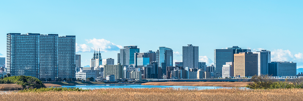 神奈川県川崎市は、多摩川をはさんで東京都と隣接したアクセス至便のビジネスエリアです。東部の臨海エリアは京浜工業地帯まで、西部は緑や住宅が多い多摩地区までと、趣が異なる構成となっています。