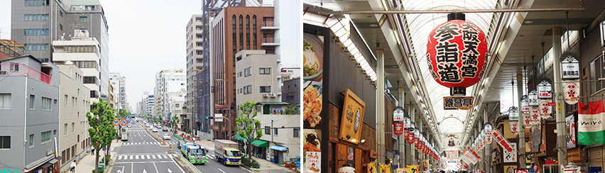 れっきとしたビジネスエリアでありながら、もう1つの顔を持っています。それが「天神橋筋商店街」の存在です。この商店街は、全長約2.6kmのアーケードに、約600もの店が商いを営む「日本一長い商店街」とされており、端から端まで歩くと30分ほどの時間を要します。エリアの中心には大阪の"天神さん"が腰を据え、商店街には昔ながらの人情味あふれる大阪があり、それらを取り囲むようにしてビジネスマンが行き交っている。それが、他エリアにはない南森町地区ならではの魅力です。