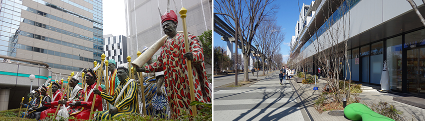 ファーレ立川の街区を歩くと、至るところにパブリックアートがあることに気づきます。その数なんと109点。アートの多くは車止めやベンチ、ビルの換気口などの機能を持ち、オフィスビルの合間を縫うようにして設置されています。立川市総合政策部広報課によると、『基地の街から文化の街へ』を標榜する立川市の、「アートを街の文化の礎にしよう」というコンセプトの具現化の一つになっているそうです。
