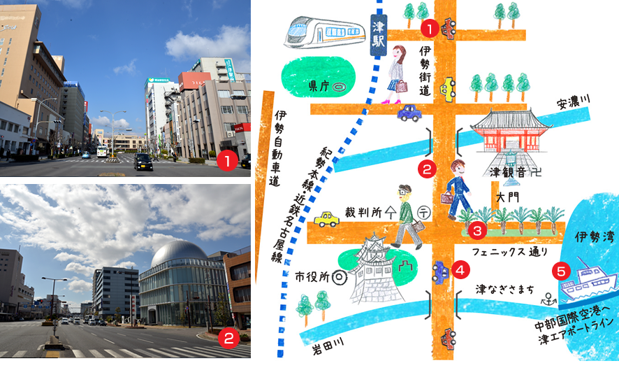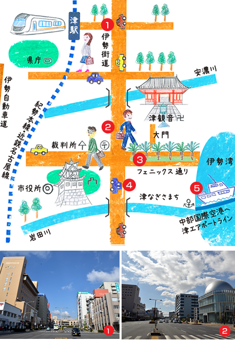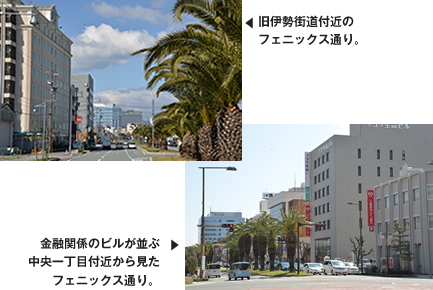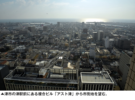 優秀な若い人材が県を離れる理由はどこにあるのでしょうか。暮らす、働くという視点で、県庁所在地となる津市のビジネス街を中心に見聞してみました。駅前の複合ビル、アスト津が市のランドマークとなっています。フェニックス通りと伊勢街道が交差する周辺には、郵便局、裁判所、市役所のほか、銀行・金融関連、保険会社などのオフィスビルが並んでいます。周辺は日本最大級のマリーナや豊かな自然も点在し、過ごしやすい街という印象でした。