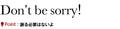 これを正しく使いこなせれば、"Don't be sorry.(謝る必要はないよ)"