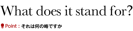 "stand for"は、「(略など)を表す」のほかにも、「〜を支持する」「〜を我慢する」「〜に立候補する」などの意味もあります。A: What does NAFTA stand for? (NAFTAは何の略ですか)