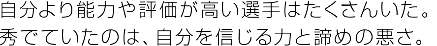 人と違って突出した部分があったとするなら、自分を信じる力と諦めの悪さくらいじゃないでしょうか。高校でも大学でも日本代表に選ばれましたが、いずれもケガ人が出たための繰り上げでしたからね。ですから決して順風満帆だったわけではなく、なりたい自分を明確にイメージして自分が納得できるアプローチを続けていれば「欲しいものは必ず手に入れることができる」と確信したんです。もし、その確信は何が根拠になっているんだ、と言う人がいれば「根拠は大畑大介自身だ」というくらいの気持ちでいますね。