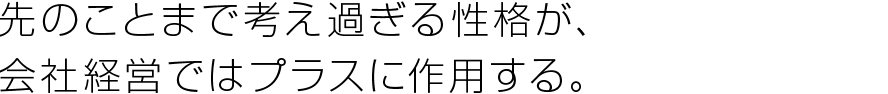 周囲は私のことを、「思いついたことをすぐに行動に移してしまう」と思っているようですが、行動に移すまでにはかなり考えているんです。考え過ぎて答えが出せない時すらある。そこが私のマイナス部分だと思っていたんです。ところが、社長業って考え過ぎて悪いことはないんですよ。ああでもない、こうでもないと先の先まで考えて、リスクヘッジのプランまで思い描けてようやく腹が決まる。これまでの実績を考えても、私は社長業に向いていると思います。なので、いろいろ失敗もしますが、それが決定的な痛手にはならないし、やり方を変えて必ず収益に結びつけます。私は転んでも、ただでは起きないんです(笑)。