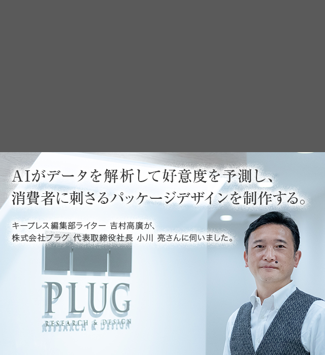 ChatGPTのみならず、AIの研究はあらゆる分野で日進月歩だ。しかし研究が進むほどに"人間はAIといかに付き合っていくのか"という問いが生まれてくる。そこで今回の『企業見聞』では、約1020万人のリサーチデータ(デザインに対する消費者意識)を使い、東京大学と共同研究したAIシステム『パッケージデザインAI』のサービスの提供をおこなう、株式会社プラグ代表取締役社長の小川亮氏に話を伺った。