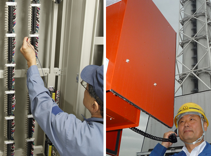 もう一つの第2の柱となる『聞く』分野では、発電所や製鉄所など大型プラントの各所に配置される「指令通話システム」の設計・施工だ。このシステムでは拡声放送と通話機能をジョイントさせた高品質の連絡装置で、ボタン操作1つで指令放送ができ、呼び出された相手とその場で通話が可能な設備の運転に必要不可欠なシステムだという。