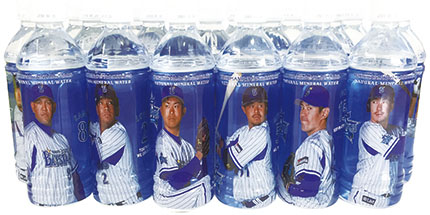 「デジタル印刷機を導入して、何ができるか分からない中で手広くいろんなことをやってきました。現在は農産物以外に500社ほどの国内ブランドとお付き合いがあります。これまではセールスサンプルを専門でつくってきたわけですが、かなり意外性に富んだ製品もつくっています。たとえば、横浜ベイスターズと楽天イーグルスのホームグラウンドで売っている"ガチャポンウォーター"は人気です。パッケージに選手の顔がプリントされたペットボトルが出てくるというもので1本200円の公式グッズになっています」。