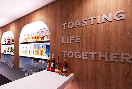 世界190超の国々で酒類ビジネスを展開するCAMPARI GROUP(本社イタリア・ミラノ)は、2020年2月に合弁会社としてCT Spirits Japan株式会社を設立し、日本市場の拡大を目的に活動を始めました。パンデミックという荒波を乗り越え、社会が落ち着きを取り戻した2024年、国内における洋酒市場のさらなる発展及び事業拡大を目指すべく、CAMPARI GROUPの100%子会社として、商号をCAMPARI JAPAN株式会社に改め、本社を新青山ビル西館(港区南青山)へ移転。新オフィスを起点に、ブランドイメージの向上と、収益を増大させる新たな取り組みが始まっています。そんな新オフィスを、代表取締役社長 阿部哲氏、執行役員・人事総務本部長 高野涼子氏、人事総務本部コーディネーター 赤坂恵利香氏の3名にご案内いただきました。