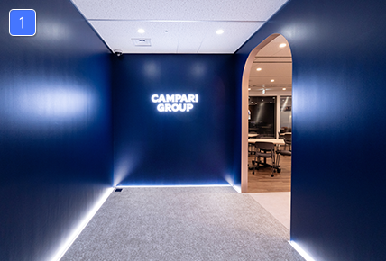 「営業からは"新しいオフィスは胸を張ってお客さまを呼べるような空間にしたい"という声が挙がりました。前オフィスは駅からの距離という事情もありましたが、会議室の広さや数など使い勝手の問題もありました。さらにはCAMPARI GROUP が大切にしているブランドイメージや世界観を"どう伝えたらいいのか"という悩みもあったようです」。