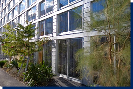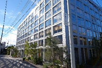 広さの確保が大前提でしたが今の鎌倉で広い土地を探すのは困難です。運よく、約687㎡と約277㎡の向かい合った土地が出て、研究開発棟と会議棟、2棟の社屋ビルを新築しました。設計事務所に「街に溶け込むような建物にして欲しい」という要望を出したところ、それを具現化するアイディアとして、特殊な建材や部材は用いず、一般的な住宅用建材(アルミサッシや木造の柱梁など)を採用してビルをつくるというユニークなアイディアが出てきました。その結果、意匠においても構造面においても建築物としての独自性が高いばかりでなく、閑静な住宅地にも違和感なく共存できるオフィスビルが完成しました。