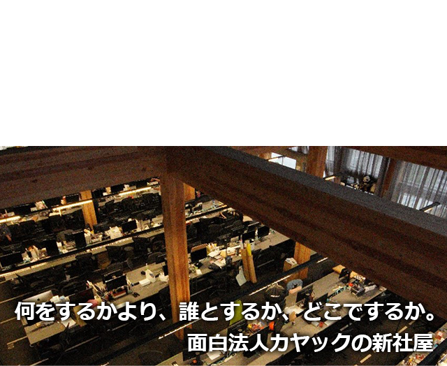 カヤックのビジョンの中に、「何をするかより、誰とするか」というキーワードがあります。そもそも会社の成り立ち自体、大学の同級生だった経営トップの3人が、「面白い仲間と、面白い会社をつくろう」ということで始めた会社ですので、"誰か=仲間"に対する思いは非常に大きなものがあります。オフィスはその"仲間が集まる場所"であり、みんなが面白がりながら新しいアイディアが沸いてくるような場所でなくてはならないと考えています。