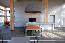 1階にはアスファルトを敷いています。これは、「外部と屋内空間をシームレスにして欲しい」という要望が具現化されたものです。実はこれもカヤックの「まち全体が僕らのオフィスです」というコンセプトを反映した"オフィスのカタチ"です。カヤックのオフィスは鎌倉市の各所に点在しています。会議をおこなう際は、各所からこの会議棟に集まって来るわけですが、物理的にも精神的にも、そうした流れを遮らないシームレスな拠点であって欲しいと考えました。建物の中に植栽(本物の植物)を入れているのも同じ理由からで、「街と職場を繋げる」という発想に基づいたアーキテクチャになっています。