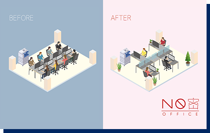 2020年の緊急事態宣言時には、9割ほどの社員がオフィスを離れてリモートワークに変わりました。そこから"3密"を回避して安心して出社できるように『NO密オフィス』という取り組みをスタートしました。