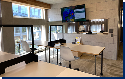 それまで研究開発棟では1階約140名、3階には120名ほどの社員が働いていましたが、その半分に席を減らしました。さらに今は、原則週3までしか出勤ができないようにしています。またオンライン専用のブースを設けるなどコロナ仕様に整備もしました。その結果、5割程の出社率まで戻りましたが、まだ半分はリモートワークですのでコロナ前とは働き方が大きく変わったと言えるでしょう。