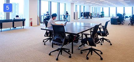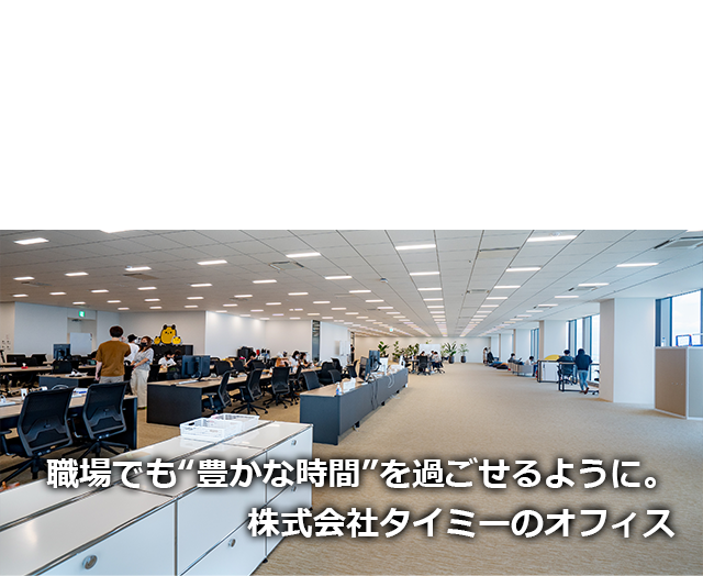 会社に行かずともリモートで仕事をした方が「通勤のストレスもなくて効率的だ」という人がいます。しかしながらタイミーで働いているスタッフは、ベーシックなところで「自分たちのミッションを実現させるために、皆で一丸となって頑張る」という気持ちを共有しているので、むしろ、集まることで仕事をした方が効率的だし効果的でもあるという"仕事の本質"のような部分を理解しています。そんな気持ちに報い、会社の成長を加速させるためにも、弊社は"働き易いオフィスづくり"にこだわりました。