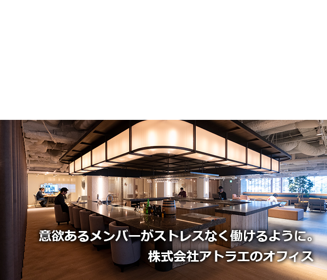 ただ、弊社のメンバーは「人や社会にとって価値のある事を成す」という意識を強く持っているので、必要以上にオフィス環境に期待する人はいません。とはいえ、自分たちが知恵を絞って工夫をして、努力を積み重ねてきた結果、アトラエのファンが増えて利益が上がり、これだけのオフィスで働けているというのは大変誇らしいことではないかと率直に思います。