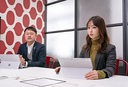 お客さまと向き合う商談スペースはエントランス同様、会社の第一印象を左右します。特に大事なポイントは利用者にとって居心地の良い空間に仕上げること。ここにもこだわりが活かされていました。