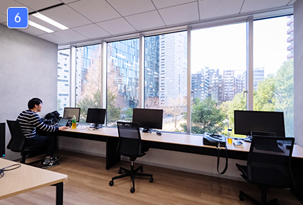 また、コミュニケーションが活発になるフリーアドレスには「周囲の目や音、人の往来が気になって落ち着いて仕事ができない」という側面もあります。こうした課題に対して新オフィスでは、自分の仕事に集中できる「集中エリア」や「防音タイプの集中ブース」などパーソナルなワークスペースも充実しています。