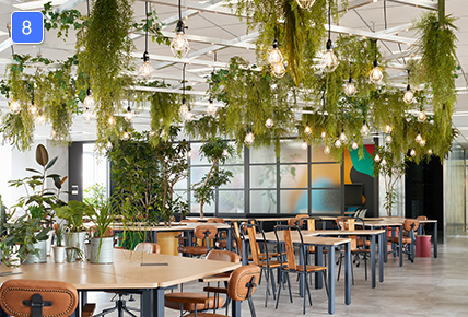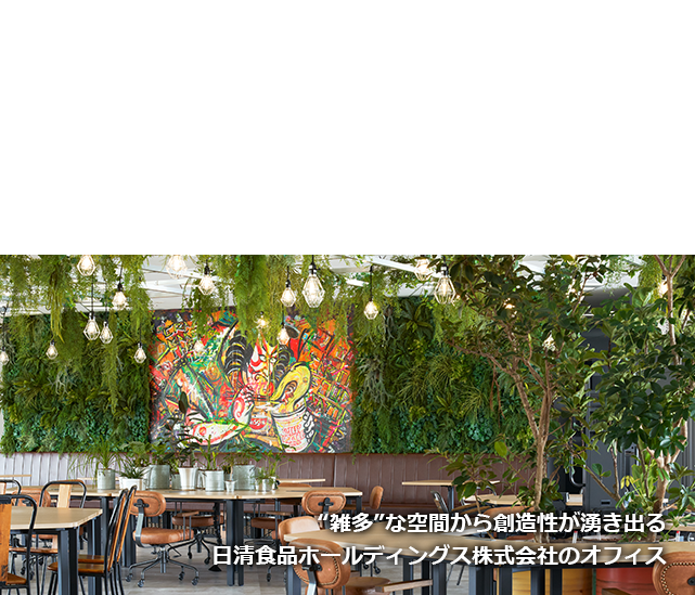 日清食品グループは1958年に発明された世界初の即席めん「チキンラーメン」などの数々のブランドを擁し、食の可能性を追求することで成長を続けてきた総合食品グループです。この度、日清食品ホールディングスは東京本社オフィスのリニューアル計画に伴い、昨年(2023年12月)に日清食品ホールディングス株式会社の生産部・資材部と、日清食品株式会社の構造改革推進部の3部門からなる新オフィスを新宿スクエアに開設しました。新オフィスには観葉植物やフェイクグリーンを多く使用し、新たなアイディアが生み出されるようなクリエイティブな空間に仕上げています。