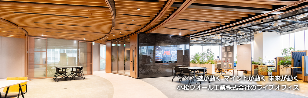 小松ウオール工業では、オフィスや会議場などの空間を自由に仕切ることができる移動間仕切、一般建築物から公共施設などで使用される可動間仕切、バリアフリーやユニバーサルデザインを考慮した軽量ドア、安全性、快適性に配慮した学校用間仕切、オフィスを快適に演出するローパーティションなど、さまざまな空間、それぞれのシーン特性に合わせて「パーティションの最適解」を提供しています。