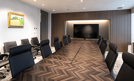 しかし、首都圏で営業・渉外活動を担うアイシン東京事務所では、少人数から大人数まで幅広いステークホルダーとの対面会議が増えることを見込み、あえて会議室を充実させており、現状は、VIP対応の応接室やプレゼンテーション可能な大会議室、複数人が同時参加できるWeb会議室に加え、中・小規模を含めて計10室を設けています。