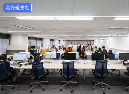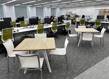 北海道支社では、多目的スペースの設置やレイアウトの見直しに加えてオールフリーアドレスを採用しています。規模は異なりますが、部門が連携してシナジーを生み出すという姿勢は東京でも北海道でも変わりません。
