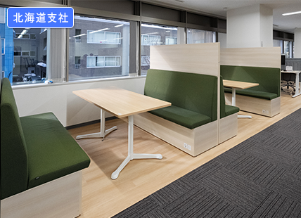 諸橋:2025年9月に移転した北海道支社のオフィスは、本社での取り組みを踏まえたうえで計画しました。北海道支社は従来からワンフロアでしたが、長く使ってきたオフィスで、現在の事業環境や働き方に必ずしも合致していない部分がありました。