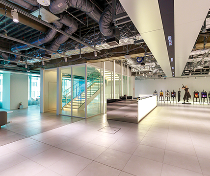 エンターテイメント業界のリーディングカンパニーとしての"らしさ"を強く打ち出しているのが8階のエントランスです。