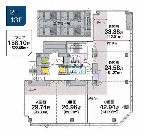 | 13階 | 158.1坪(522.647㎡) | 3,320,100円21,000円/坪 | 39,841,200円252,000円/坪 | 2027.04上旬 | ||